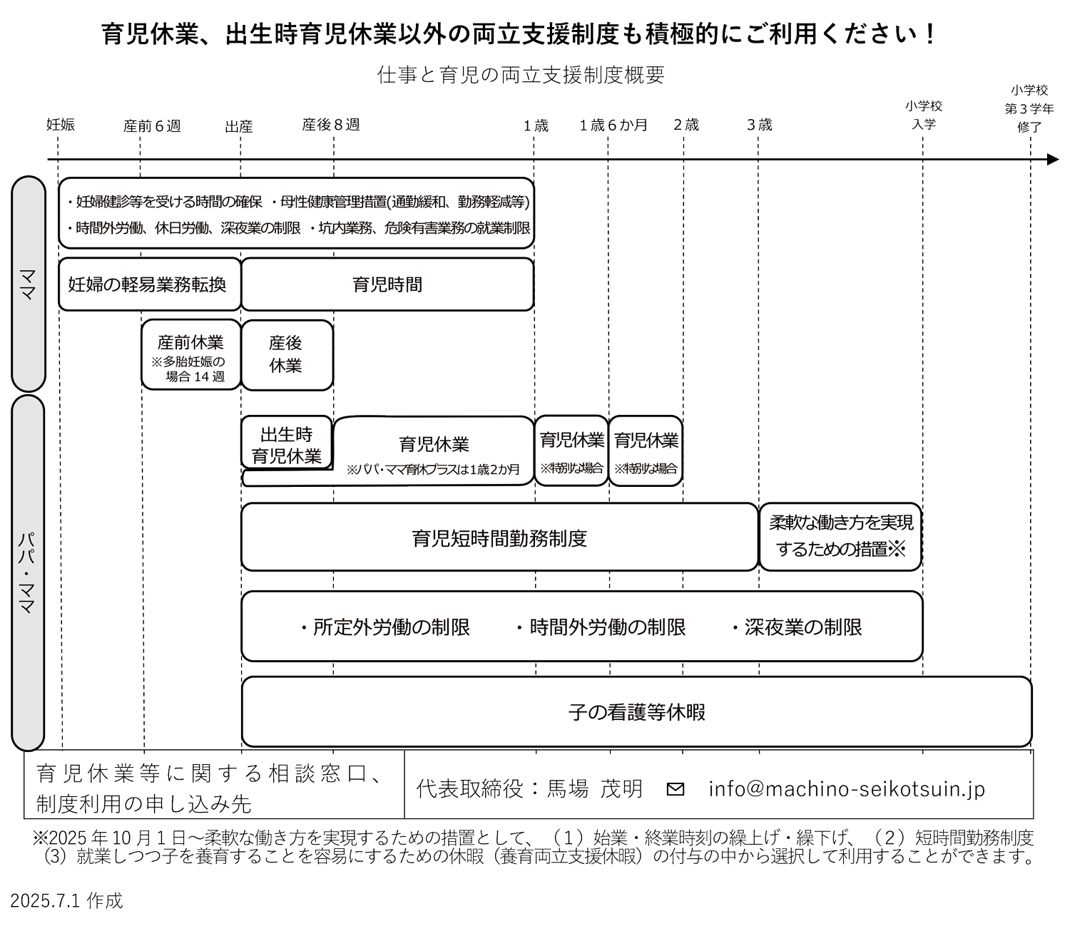 会社は、従業員が仕事と子育てを両立させることができ、安心して働き続けられる職場づくりを目指しています。